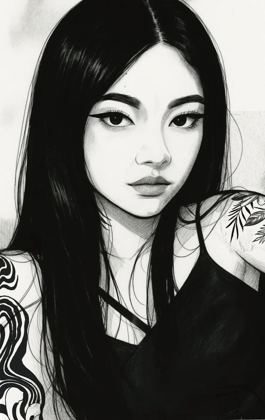 Smile, tattos, black hair and height 170cm